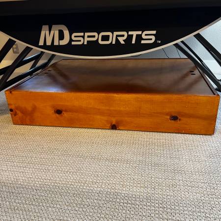 We used this as a toy box for years. One side of lid has fabric for quieter play time. Rope pull handles and sliders on bottom for easy movement on carpet.