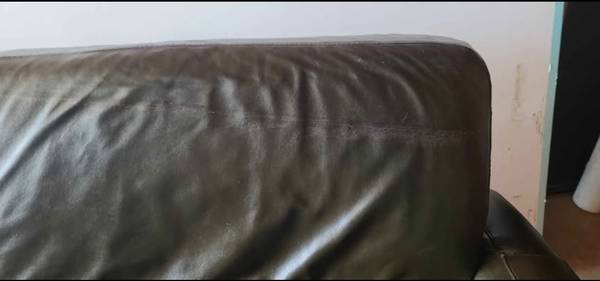 leather couch dark olive/brown leather sofa couch loveseat real leather scratch on one headrest area but hardly noticeable, leather cleaner should help located bandera/410