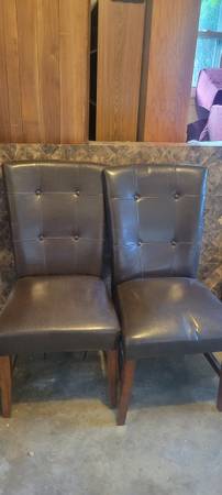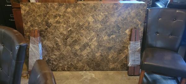 Marble table with matching set of 6 chairs. Retails at $963. Table is in excellent condition no marks or chips, chairs are good and in fair condition ( one has under cloth damage and chair sag)....