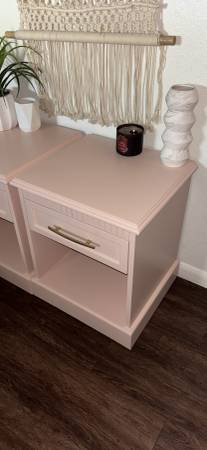 Solid wood & freshly refreshed in a soft blush pink that brings warmth and charm to any space! The color gives off a calm, feminine vibe that fits beautifully in a nursery, bedroom, or cozy corner.