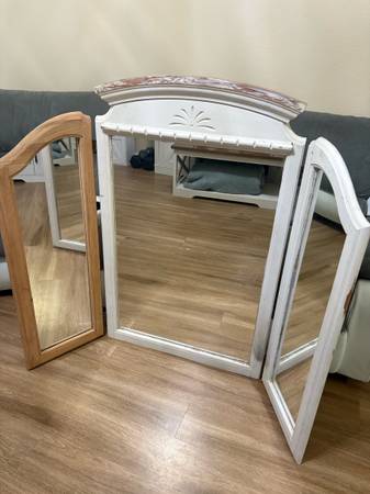 Was in the process of sanding this down to refinish it but unfortunately I am moving and no longer have the space or time for it! Used to put it on top of the desk I am also selling and used it as a vanity.