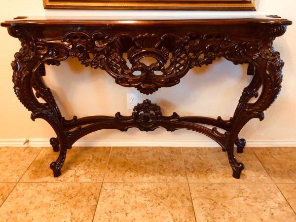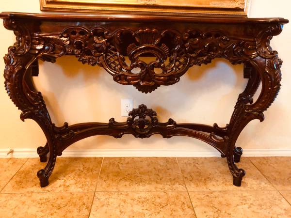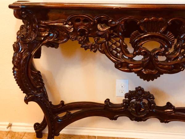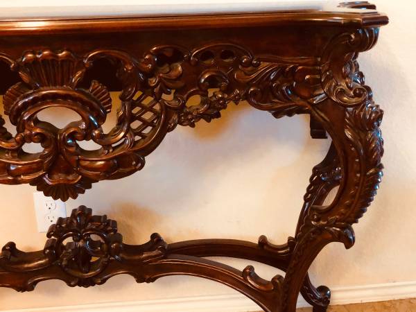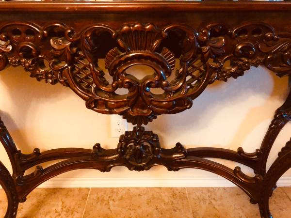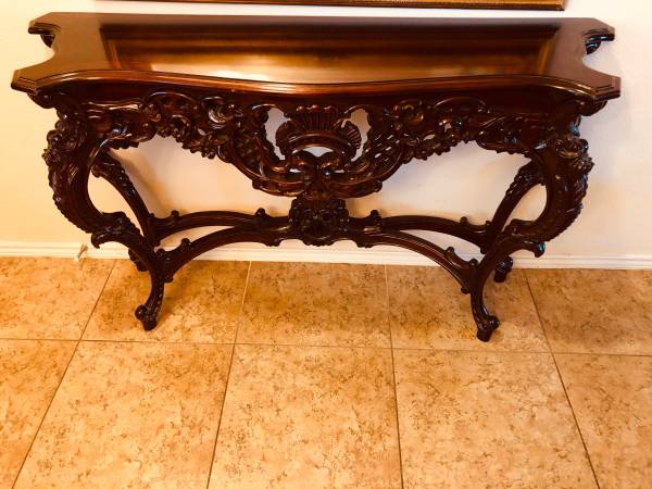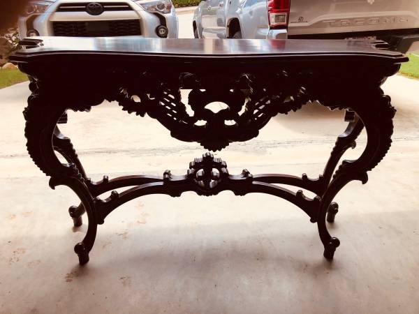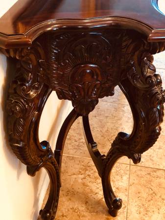 ORNATE MAHOGANY FORMAL HAND CARVED TABLE - $750 excellent condition H 36” L 52” W 17”