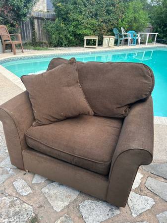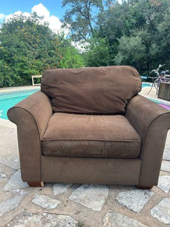 Comfortable brown armchair in good condition. Delivery available for a small fee, depending on location. Located near Bitters and 281.