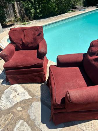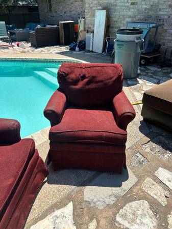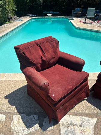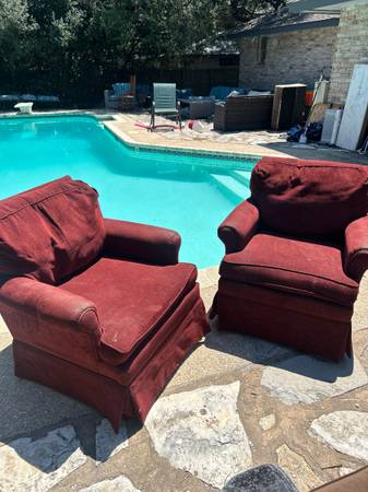 Comfortable red armchairs, perfect for living room or apartment. Elegant and design regal informed delivery available for small fee. Located near Bitters and 281