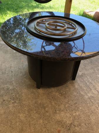 HIGH QUALITY SUMMER COLLECTIONS BRAND MADE IN THE US GRANITE FIRE TABLE AND 3 CHAIRS. ALUMINUM FRAMES POWDER COATED LIKE NEW CONDITION. CUSHIONS ARE PERFECT AND THE FIRE TABLE WORKS PERFECTLY. THIS SET WAS ORIGINALLY $5,000. I WILL TAKE $750 CASH OBO. SAN ANTONIO CALL TOM show contact info