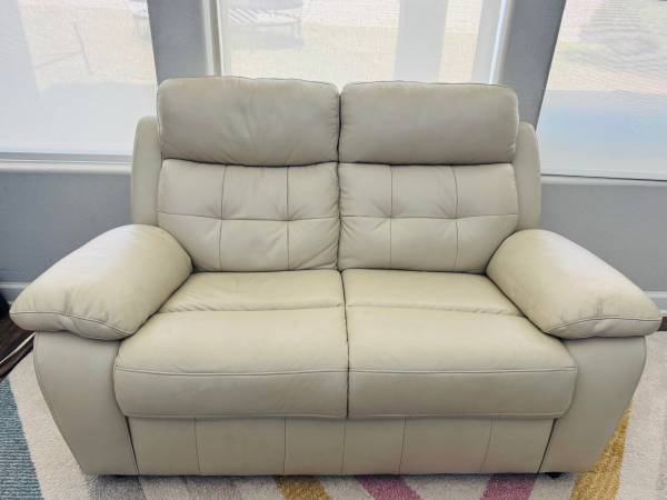 This set is less than two years old, purchased new from Rooms to Go. The sofa has two recliners. The loveseat does not recline. Coming from a pet friendly home. The material is faux leather, cool...