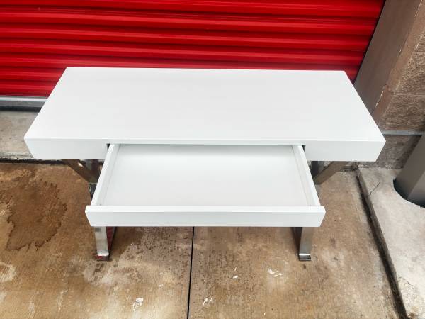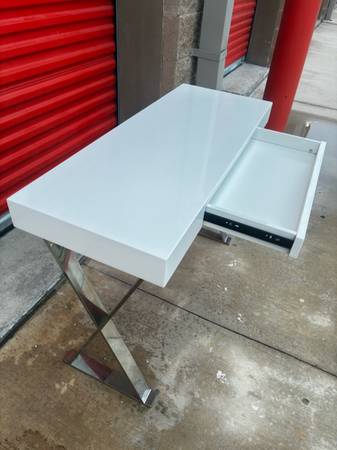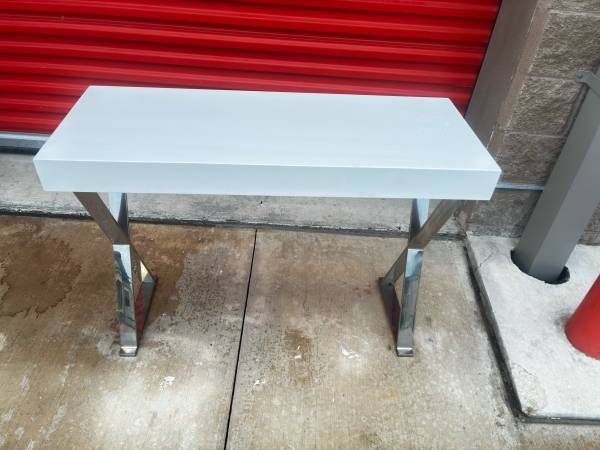 Rectangular White Modern Computer Desk, Silver, in Really good condition, asking $175 for it, if interested in purchasing text or call me at .