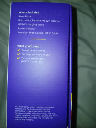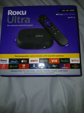 Roku Ultra Streaming Player HD 4k Dolby vision Wifi 6 Rechargeable voice remote with backlit buttons