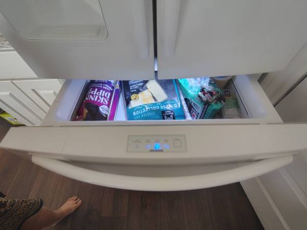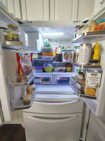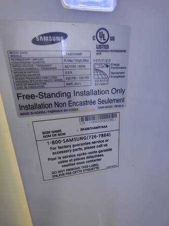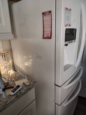 This ad is for a Samsung refrigerator with all the whistles and bells. There are scratches (in pic) on one side, yet easily covered up with a magnet and a couple papers. My Mom is moving and this will not fit in her new place. Works great, she's using it until November 5. Locals only. Cash only. You haul. Call/text Cindy 9am to 9pm if interested. Happy hunting!