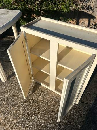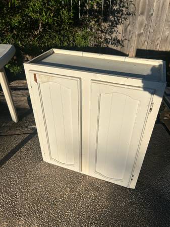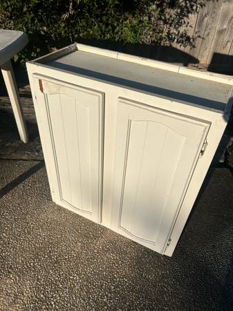 Sturdy cabinet, ideal for storage. Delivery available for a small fee, depending on location. Great accent to any home or apartment. Solid in current condition or awesome project piece. Length 27...