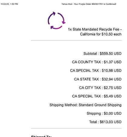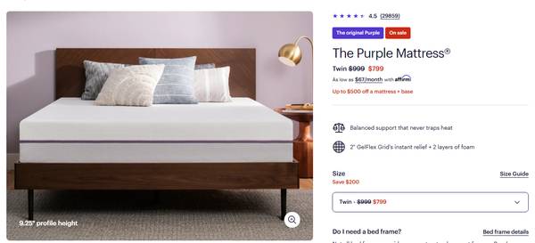 I'm asking to recoup the $600 since the Purple is currently selling their "The Purple Mattress" twins as low as $799 solo.