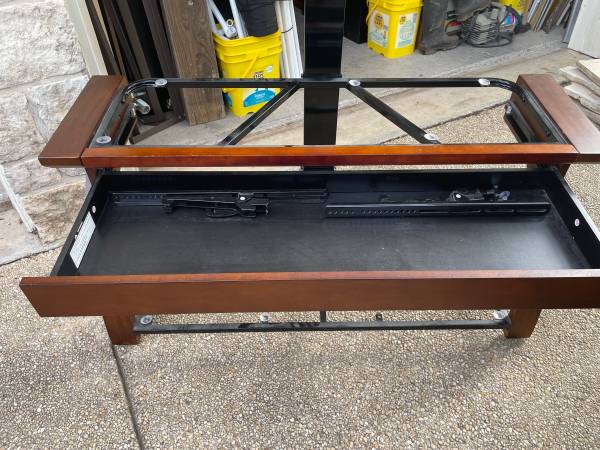 TV Console With 3 Smokey color glass shelves With long drawer 50 inches long 24 inches tall 20 inches deep *All proceeds will be donated to the San Antonio Humane Society and the Wildlife Rescue in...
