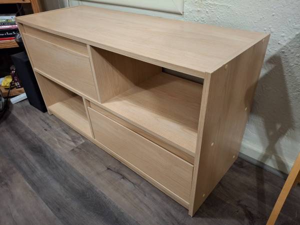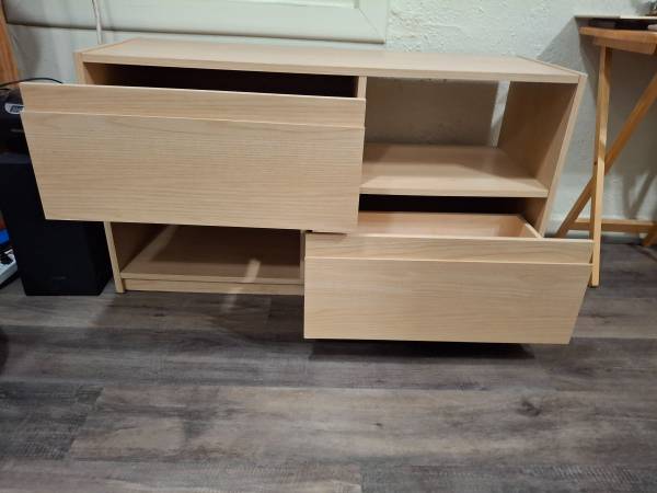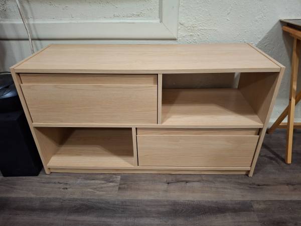 Nice stand in good condition. Very small chip on one back corner. Measures 42 inch wide by 22 inch high 16 inch deep. Location is far south San Antonio.