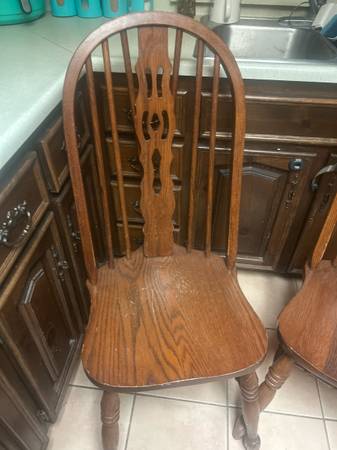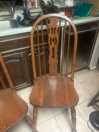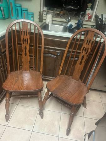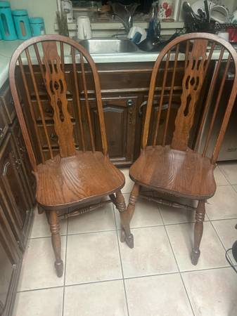 Set of two wooden dining chairs with carved back design. 30 for both chairs. Delivery available for a small fee, depending on location. Located near Bitters and 281