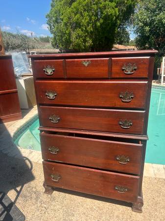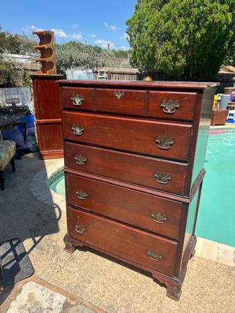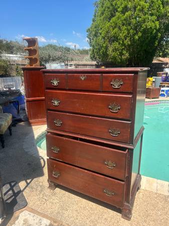 Vintage wooden dresser with charm and grace. Delivery available depending on location. Great accent to any home or apartment. Length 34 inches Width 19 inches Height 49 inches