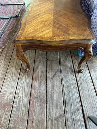.Vintage 5 Ft coffee table - Very Good Condition - Real wood - no particle board ! Has custom scalloped glass top (no scratches) 2ft wide and 16" Tall 1 owner. - Call for further info. Se Hable...