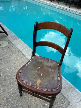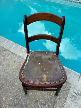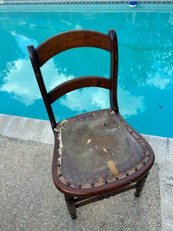 Old wooden chair with worn seat, ideal for restoration. Perfect for a moment of ponder and reflection. Awesome project piece. Delivery available for a small fee, depending on location. Located near...