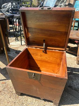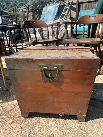 Vintage wooden storage chest with metal handles. Please be warned on board on top is loose. Delivery available depending on location. Great accent to any home or apartment. Length 21 inches Width 18...