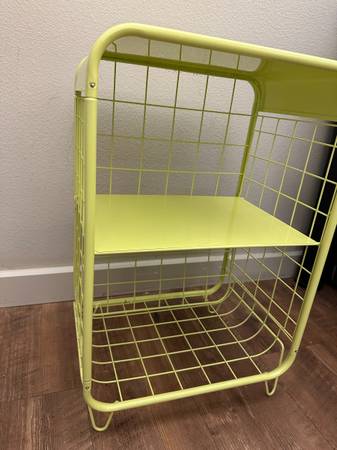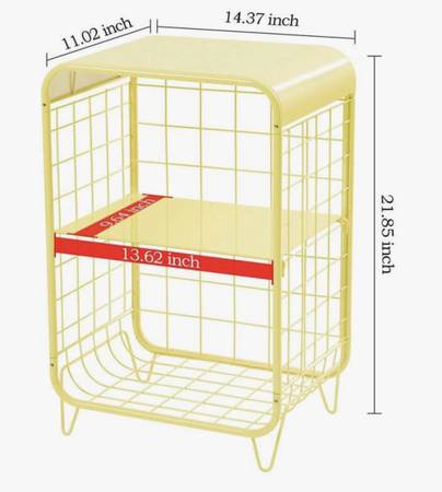 Metal yellow side table with shelf. Originally $50. Can deliver if you are in a reasonable distance. Contact me at 21zero-3nine1-9four58