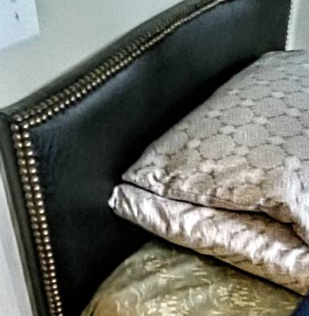 Included are two phone toppers that are 2 in thick each. A moss green set of sheets. And a headboard that is leather with little metal studs. There might be a slight smoke smell in the mattress but there is a way to get that out it's worth it because the mattress is perfectly clean with no stains or holes or anything otherwise.