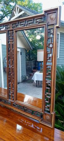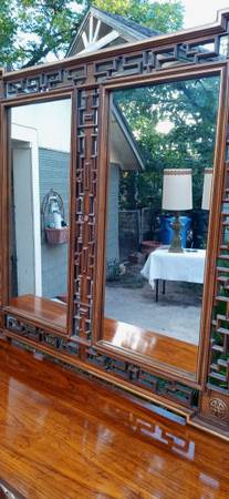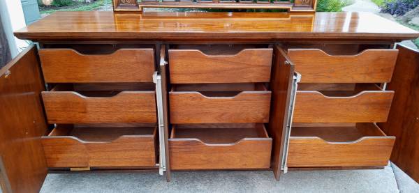 Beautiful Vintage 9 drawers inside doors Dresser (33 high x 78 width x 21 depth) And Mirror (46 high x 50 width x 1 depth) made in Sweden in the late 1960's., it is in excellent condition with minor scuffs, wooden and plastic tracks (only one is a little worn), this piece is made of walnut wood and hard plastic the way furniture was made in the 60's and 70's. Thank you!