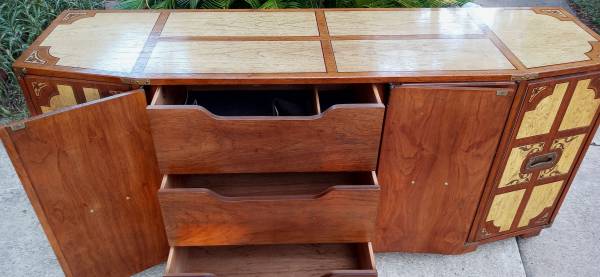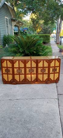 100% Cherry wood beautiful Mid Century Modern Italian Style Drexel Buffet cabinet (The Oxford Collection)., it is in great condition with minor scuffs and original metal pulls. Thank you! (32 high x...