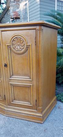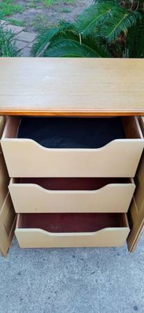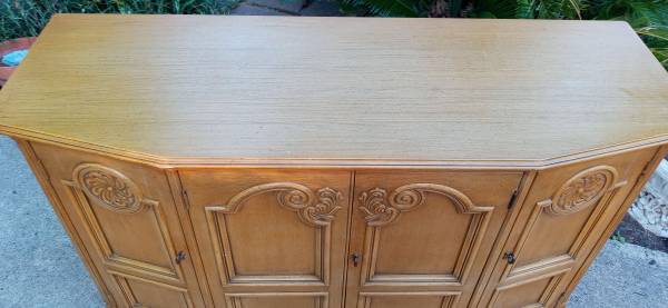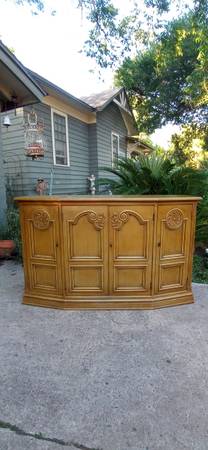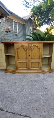 100% Hand Painted in olive green (Original paint) Walnut wood,two side by side doors with removable wooden shelfs inside, two other center ones with additional medium drawers Hollywood Regency Vintage Credenza made by Henredon Furniture Co. (Circa 1960's).,it is in excellent condition with original metal pulls and very minimum scuffs. Thank you! (32 high x 52 width x 18 depth)