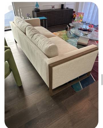 Brand new luxury couch. 8' x 3' and 26in. tall. Metal Frame with real wood armrests. NOT A SLEEPER SOFA. Will be available after December 22, 2025. Serious Inquires Only. Pick-Up Only.