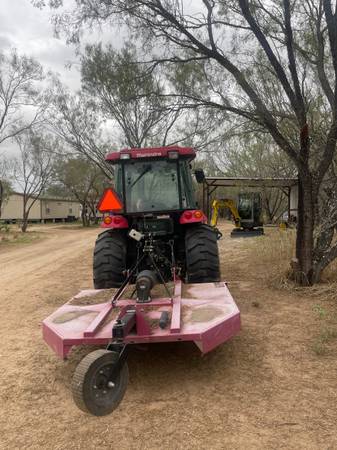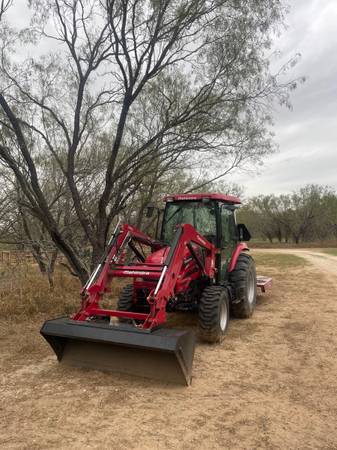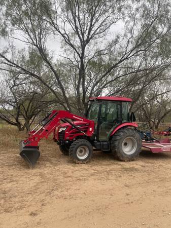 Engine: 55 HP. Tractor includes pallet forks, rake grapples, 4-in-1 buckets, mower, a box blade and post hole digger. Used, less than 5 years old. Almost like new condition. 35000 or best offer.