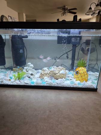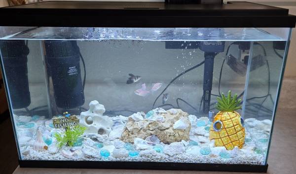 Aquarium 10 galon with 2 filters and 5 fish including, price negotiable