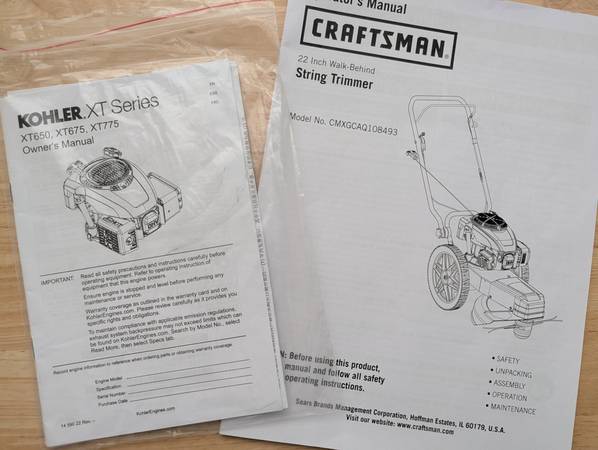 Craftsman 22" Walk Behind String Trimmer. Runs great. Low hours. 5 years old. with manuals.