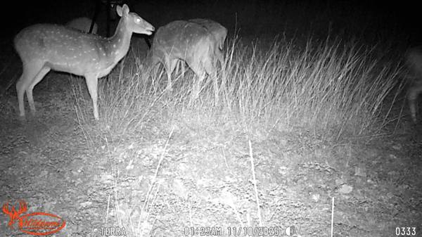 , here are recent field cam pictures and a text from one of our latest harvests! You hunt from 2pm one day to 2pm the next, the hunt is overnight because axis here move at night, calls are best. you can harvest three animals, with no hidden fees!