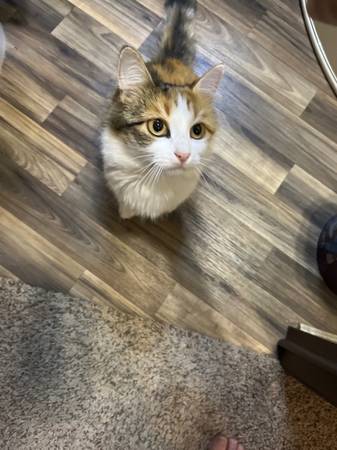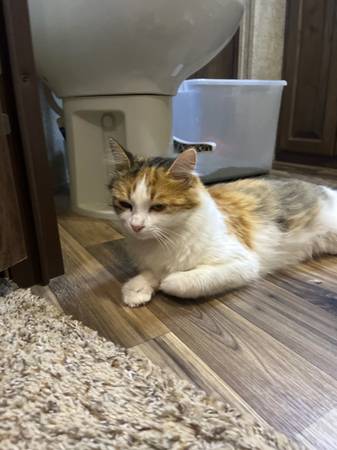 Very sweet girl looking for a good home. Probably about 9 months old. Loves making biscuits. I can not keep her due to my health issues. 10.00 rehoming fee comes with litter box. Please email Thanks