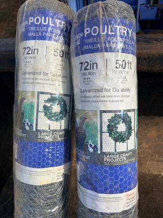 Chicken mesh wire (72”x 50’) NEW-NEVER USED Sales for 90.00 a roll at TSC Selling for 75.00 a roll CALL If no answer please leave message I’ll return call Asap NO TEXT MESSAGES FLORESVILLE AREA