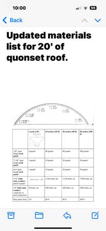 Use for roofing. No rafters required. Bolt up, bottom base to attach to walls and bolts supplied. Plans supplied with Engineers seal. Height from base is 11’4”. Width is 40’ length from 20’ to 100’.