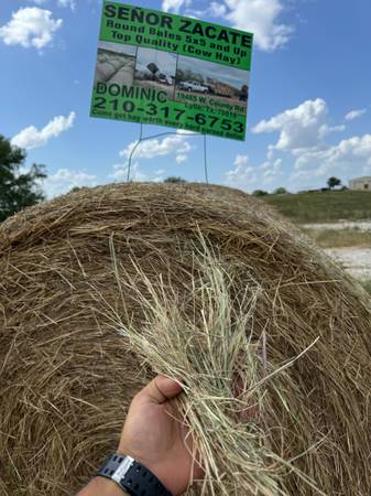 ✅fresh 5x6 top quality cattle hay!! Coastal Green bales all fertilized and irigated hay fields grown to bale hay for our cattle,🐄 come stock up with some big 1400 pound 5x6 bales get you a bale that is going to give the nutrients your cattle need in this south Texas drought!!!! (We offer delivery also)📍located in lytle texas big-Tight and heavy!!