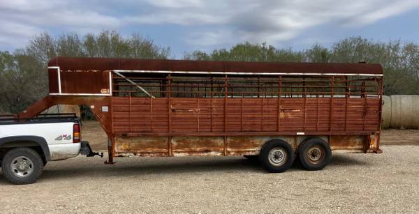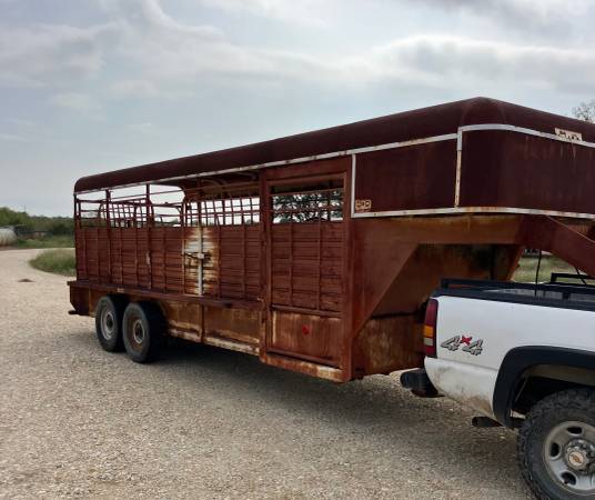 20ft Gooseneck Brand Trailer, swing-slide rear gate, 2 center gates, front side gate, good floor and tires, title and up to date plates. Serious inquiries only.