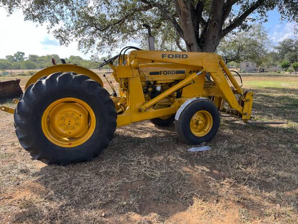 Ford 4500 diesel with hd loader. Will pickup hay bales to 10'4" bottom of bale to ground for barn stacking with the pallet forks. 52 hp, 6/4 manual trans, power steering, independent 540 pto, 3 pt lift cat 2, good tires, Starts great, no blow by, showing 2600 hours give or take. Tires good. .,.,.,.,.,.,.,.,.,.,.,.,.