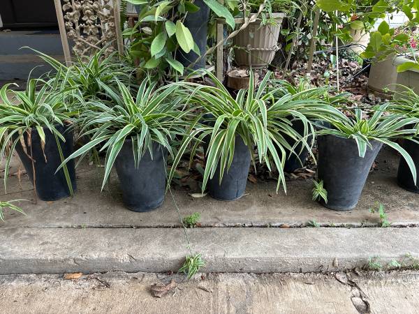 Large Spider Plants $10 Even larger than pictured pictures a a couple months old they all have baby spiderettes on them. Also have sweet basil and plant stands 10 ea