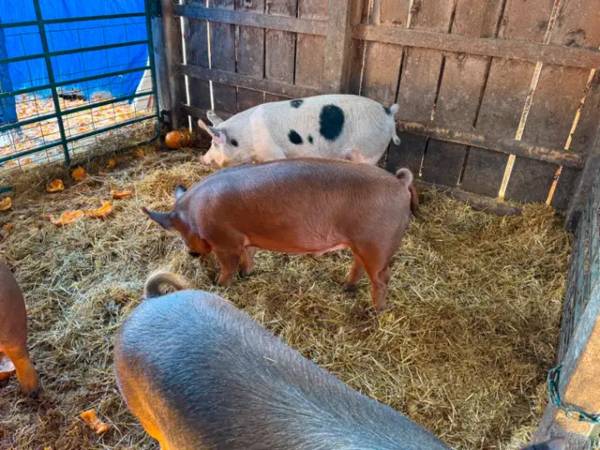 4 pigs Ready for market 200 - 250+lb. Fed a lot of blueberries and pumpkins $350.00 each