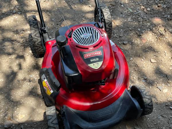 Craftsman gold push lawnmower 6.75 engine 21 inch blade self prime big tires in the back good running condition $155