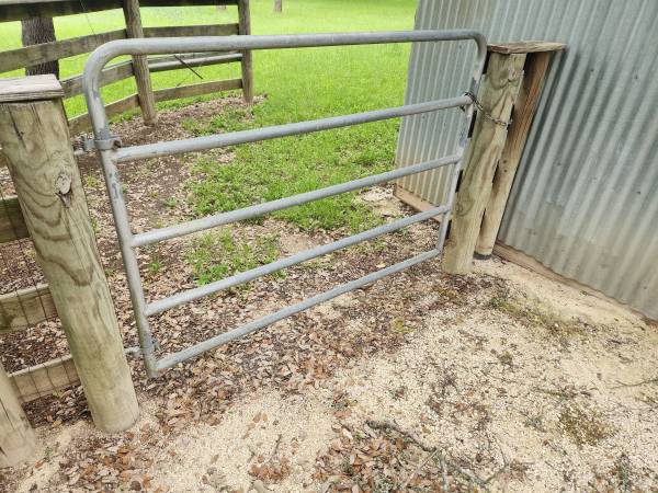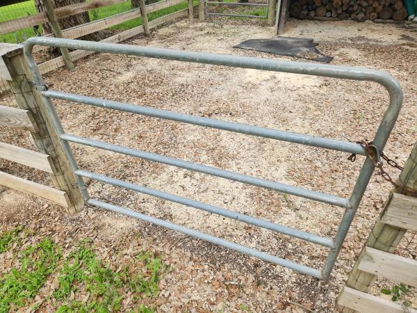 Offered for your consideration are a total of four 6ft. Galvanized Ranch Gates. These gates measures 5ft.-6in. long and 48in. tall and are intended for 6ft. gate openings. These gates were purchased new years ago, back before everything started getting made cheaply. These gates feature 1-3/4in galvanized welded tubing. Each gate includes the mounting hardware. These gates are in excellent condition.