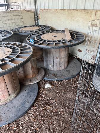 Wire spools both Large and Small for your goats to play on. Plastic top and bottom so they will not rot when outside. Small $20 Large $30 several to choose from. Please No Texts or ask if available....