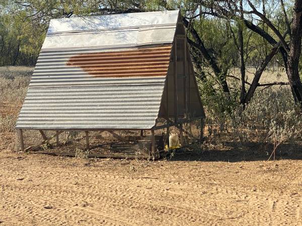 1-8x8 square one. No wheels and missing about 2ft x 4ft of tin. You can have the pieces covering it if you want-$200