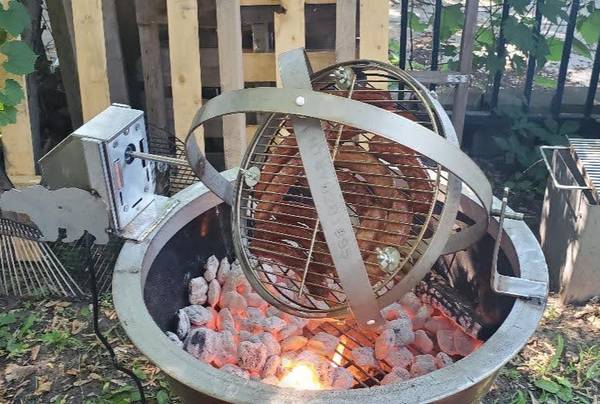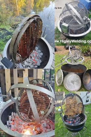 Gyroscopic Spinning Gimbal Rotisseries: Multi-axis rotation, sometimes battery-operated with an AC motor and electric cord. The battery will last 10 hours. Before you order, contact Higley Welding Minnesota. Visit our website.