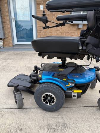 For sale is a Pride Mobility J6 power wheelchair in great working condition. This chair is comfortable, easy to maneuver, and built to handle both indoor and outdoor use with its mid-wheel drive design.