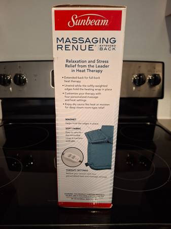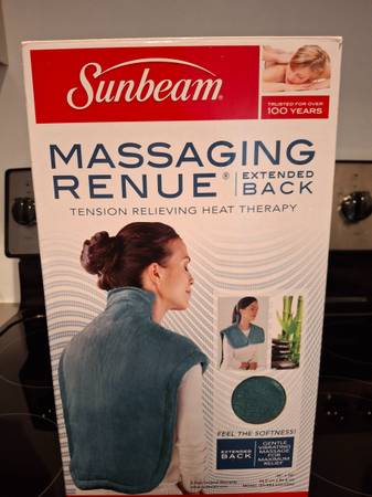 Sunbeam Extended Back Heating Pad with Massaging Renue. Brand new in box never used Blue color. Several Massage Settings. $25.00