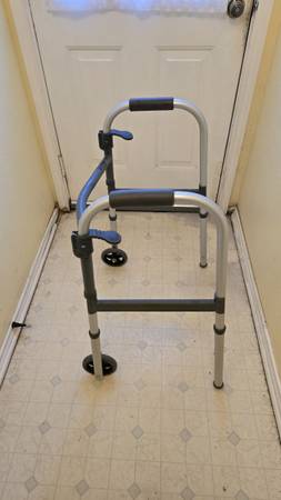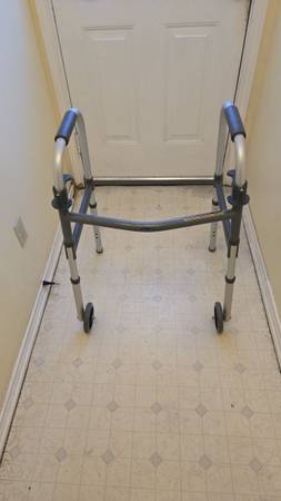 Hi I have a Invacare aluminum walker that I'm selling used but still in good condition. I believe its 16" deep and at least 18" wide and I believe it adjust from 32" to 36" high or more. Price is...