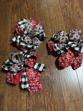 These are Christmas bows made by Miss Casey's Christmas store in Midland. There are a total of 18. I have added a picture of my Christmas tree for reference of the size of the bows. Local pick up...