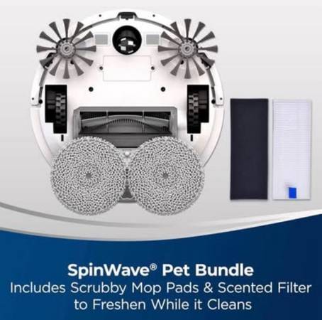 New in box. Bissell SpinWave Pet Robot, 2-in-1 Wet Mop and Dry Robot Vacuum, Rotating Mop Pads Scrub Floors, WiFi Connected with Structured Navigation